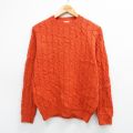 S★古着 長袖 ケーブル セーター メンズ 80年代 80s クルーネック オレンジ 25dec22