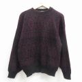 M★古着 長袖 セーター メンズ 90年代 90s 総柄 アクリル クルーネック USA製 エンジ 25dec24