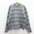 L★古着 長袖 セーター メンズ 00年代 00s シェットランドウール クルーネック グレー【spe】 25dec27