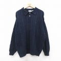 XL★古着 IZOD 長袖 ケーブル セーター メンズ 90年代 90s 襟付き 大きいサイズ コットン 濃紺 25dec29