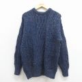 XL★古着 長袖 アラン フィッシャーマン ケーブル セーター メンズ ウール クルーネック 濃紺【spe】 26jan08