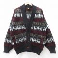 XL★古着 長袖 ニット カーディガン メンズ ラマ ウール エクアドル製 黒他【spe】 26jan15