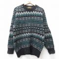 S★古着 エディーバウアー 長袖 セーター メンズ 90年代 90s フェアアイル ウール クルーネック 黒他 26jan15