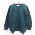 S★古着 長袖 セーター メンズ ウール クルーネック スコットランド製 緑 霜降り 26jan23
