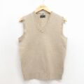 S★古着 ニット ベスト メンズ 80年代 80s 無地 ウール Vネック イングランド製 ベージュ 26feb02