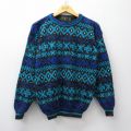 S★古着 長袖 セーター メンズ 90年代 90s フェアアイル アクリル クルーネック USA製 黒他 26feb05