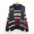 XL★古着 長袖 セーター メンズ パッチワーク コットン クルーネック エンジ他 26mar04