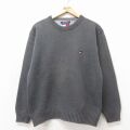 M★古着 トミーヒルフィガー 長袖 ブランド セーター メンズ 90年代 90s ワンポイントロゴ コットン クルーネック 濃グレー 26apr23
