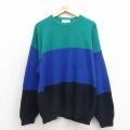 XL★古着 エディーバウアー 長袖 セーター メンズ 90年代 90s 大きいサイズ コットン クルーネック USA製 青他【spe】 26apr25