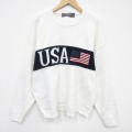L★古着 長袖 セーター メンズ 90年代 90s USAロゴ アクリル クルーネック USA製 白 26jan27