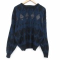 XL★古着 長袖 セーター メンズ 90年代 90s レザー使用 大きいサイズ アクリル クルーネック 紺他 26jan27