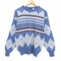 M★古着 長袖 セーター メンズ 90年代 90s ウール クルーネック イギリス製 薄紺他 26jan27