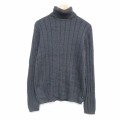 M★古着 カルバンクライン 長袖 セーター メンズ ワンポイントロゴ コットン タートルネック ハイネック 濃グレー 26jan27