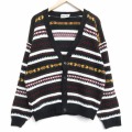 XL★古着 ニューエラ 長袖 ニット カーディガン メンズ アクリル USA製 黒他 ボーダー 26jan28