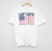 L★古着 サーフスタイル 半袖 Tシャツ メンズ 魚 コットン クルーネック 白