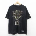 XL★古着 半袖 Tシャツ メンズ スカル クルーネック 黒
