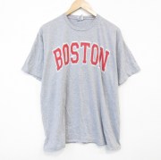 XL★古着 半袖 Tシャツ メンズ ボストン 大きいサイズ クルーネック グレー 霜降り
