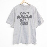 XL★古着 半袖 Tシャツ メンズ GUNS 大きいサイズ クルーネック グレー 霜降り