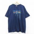 XL★古着 半袖 Tシャツ メンズ アメリカ 大きいサイズ コットン クルーネック 紺