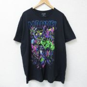 XL★古着 半袖 Tシャツ メンズ マーベル 大きいサイズ コットン クルーネック 黒