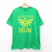 XL★古着 半袖 Tシャツ メンズ ニンテンドー ゲーム ゼルダの伝説 大きいサイズ コットン クルーネック 緑