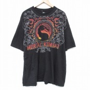 XL★古着 半袖 Tシャツ メンズ 大きいサイズ ゲーム モータルコンバット コットン クルーネック 黒