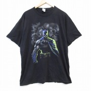 XL★古着 半袖 Tシャツ メンズ DCコミックス バットマン 大きいサイズ コットン クルーネック 黒