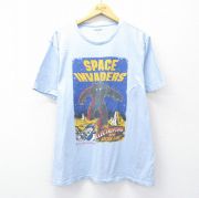 XL★古着 オールドネイビー OLD NAVY 半袖 Tシャツ メンズ ゲーム スペースインベーダー コットン クルーネック 薄紺