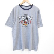 XL★古着 半袖 Tシャツ メンズ ディズニー ミッキー 大きいサイズ コットン クルーネック グレー 霜降り