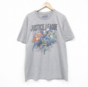 XL★古着 オールドネイビー OLD NAVY 半袖 Tシャツ メンズ DCコミックス ジャスティスリーグ バットマン スーパーマン コットン クルーネック 濃グレー