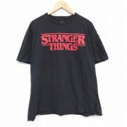 XL★古着 半袖 Tシャツ メンズ ドラマ ストレンジャーシングス 大きいサイズ コットン クルーネック 黒