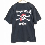 XL★古着 半袖 Tシャツ メンズ スカルパイレーツ 大きいサイズ コットン クルーネック 黒