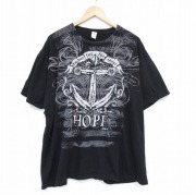 XL★古着 半袖 Tシャツ メンズ イカリ 大きいサイズ コットン クルーネック 黒
