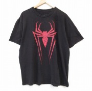 XL★古着 半袖 Tシャツ メンズ スパイダーマン 大きいサイズ コットン クルーネック 黒