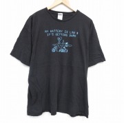 XL★古着 半袖 Tシャツ メンズ メッセージ 大きいサイズ コットン クルーネック 黒