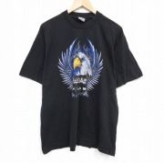 XL★古着 半袖 Tシャツ メンズ スカルウィング 大きいサイズ コットン クルーネック 黒