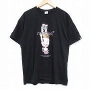 L★古着 フルーツオブザルーム 半袖 Tシャツ メンズ ネコ コットン クルーネック 黒