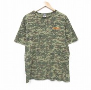L★古着 半袖 Tシャツ メンズ デジタルカモ コットン クルーネック 緑他 迷彩
