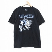 L★古着 半袖 Tシャツ メンズ アニメ トムとジェリー コットン クルーネック 黒
