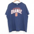 【商品名】 XL★古着 半袖 Tシャツ メンズ シラキュースオレンジ コットン クルーネック 紺