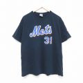 XL★古着 半袖 Tシャツ メンズ MLB ニューヨークメッツ マイクピアザ 31 コットン クルーネック 紺 ネイビー メジャーリーグ ベースボール 野球 25may21 中古