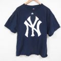 【商品名】 XL★古着 マジェスティック 半袖 Tシャツ メンズ MLB ニューヨークヤンキース 大きいサイズ クルーネック 紺 メジャーリーグ ベースボール 野球