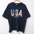 【商品名】 XL★古着 半袖 Tシャツ メンズ USAロゴ 大きいサイズ コットン クルーネック USA製 紺