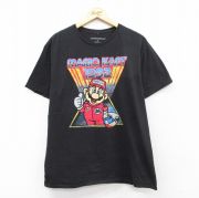 XL★古着 半袖 Tシャツ メンズ ゲーム ニンテンドー スーパーマリオ コットン クルーネック 黒