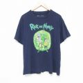 XL★古着 半袖 Tシャツ メンズ アニメ リックアンドモーティ コットン クルーネック 紺