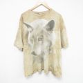 【商品名】 XL★古着 半袖 Tシャツ メンズ オオカミ 大きいサイズ コットン クルーネック 薄茶他 タイダイ