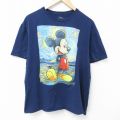 XL★古着 半袖 Tシャツ メンズ ディズニー ミッキー 大きいサイズ コットン クルーネック 紺
