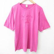 L★古着 半袖 Tシャツ メンズ マウイ 刺繍 コットン クルーネック 濃ピンク