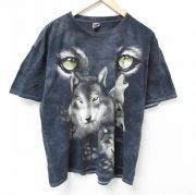 XL★古着 半袖 Tシャツ メンズ オオカミ 大きいサイズ コットン クルーネック 黒他 タイダイ