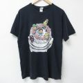 L★古着 半袖 Tシャツ メンズ ミニオン ショートケーキ コットン クルーネック 黒 ブラック 25may26 中古